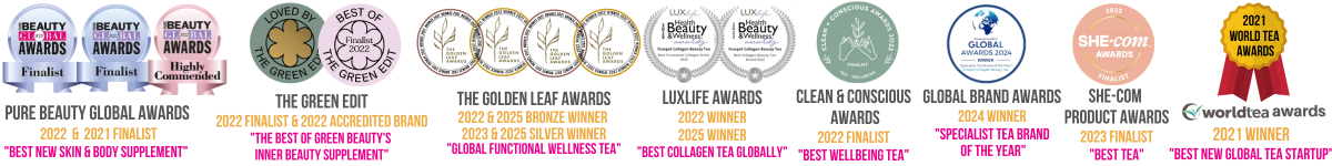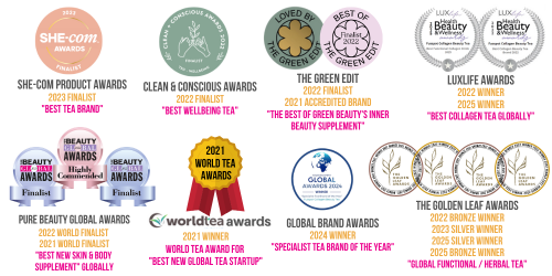 We bet you’re looking for smoother, radiant, glowing skin? Less wrinkles? Thicker hair? Stronger nails and joints, and improved gut health…. Gosh, aren’t we all…… Well, you’ve landed in the right place! (phew!)…. Upgrade your skincare routine with our collagen infused organic tea and let it work from the inside! Enjoy collagen benefits from Type I and III bioactive hydrolyzed collagen peptides to help reduce fine lines & wrinkles, dull, dry or flaky skin, skin pigmentation, hair loss, weaker joints and brittle nails! We’ve formulated this range of Collagen Beauty Teas, the ultimate collagen drink, packed with antioxidants and infused with one of the world's most trusted hydrolyzed collagen peptides for a super-boost for your skin, hair & nails - plus we blended delicious organic herbs, tisanes, botanicals and spices to help support your beauty from within!