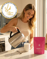 Nourish your inner glow with an organic Collagen Tea for Glowing Skin that is packed with polyphenols, antioxidants and Type 1 & 3 Collagen Peptides - specifically formulated to give your skin a boost from the inside! Our award-winning blend will give you your daily caffeine hit, collagen boost and antioxidant fix! Developed to help support and improve your skin elasticity and skin texture, and to maintain your collagen levels and restore your skin health to gain that healthy glow from the inside! This is a super-uber healthy collagen tea that your skin will just love and benefit from - packed with organic ingredients and antioxidants to assist in fighting free-radicals and cleanse your system! A beautiful clean taste, and a light flavour, this collagen tea blend has Type I and Type III hydrolyzed collagen peptides to give you more bang for your buck in every sip, helping to enhance your beauty from within and build up your collagen so your skin looks radiant and supple and help fight the signs of ageing, as well as the signs of dull, dry, saggy and/or flaky skin. You’ll love drinking this collagen tea day or night! Delish!